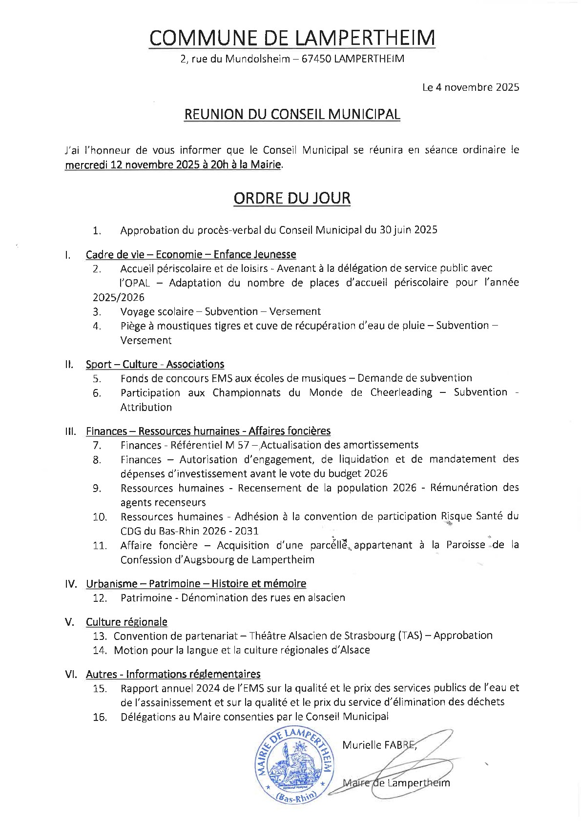 Le conseil municipal se réunira le mercredi 12 novembre à 20h00 à la Mairie, salle du Conseil.